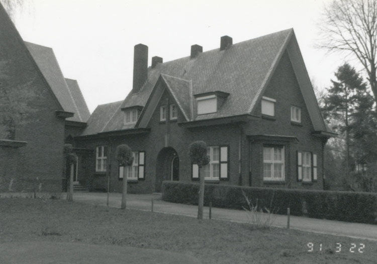 Pastorie die via de sacristie in directe verbinding met de rk-kerk staat. Pastorie is haaks op de kerk geprojecteerd, parallel achter de zuidelijke kruisarmen. Symmetrische frontgevelopbouw. Plint met rollaag. Drievoudige rondboogvormige strek bij deuropening, a.h.w. steunend op drie lagen verticaal metselwerk. Sluitsteen van de rondboog loopt geprofileerd door tot in de topgevel. Uitkragingen op de gevelhoeken dragen het overstek. Erker in de zijgevel. Topgevel aan achterzijde, even als garage-uitbouw.