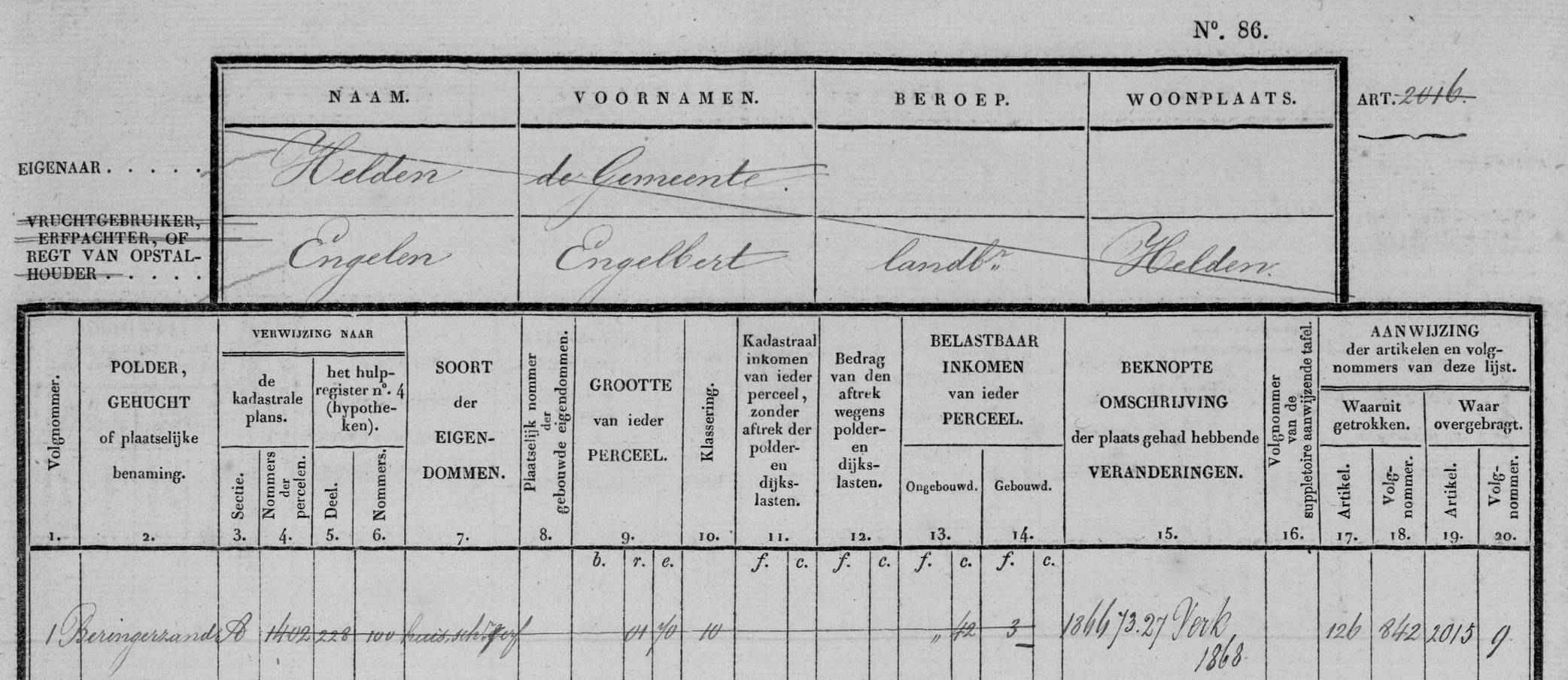 | Vliegert A1402 | 1909 | Gerard en Theodoor Engelen | 4590,17 | bijbouw | |