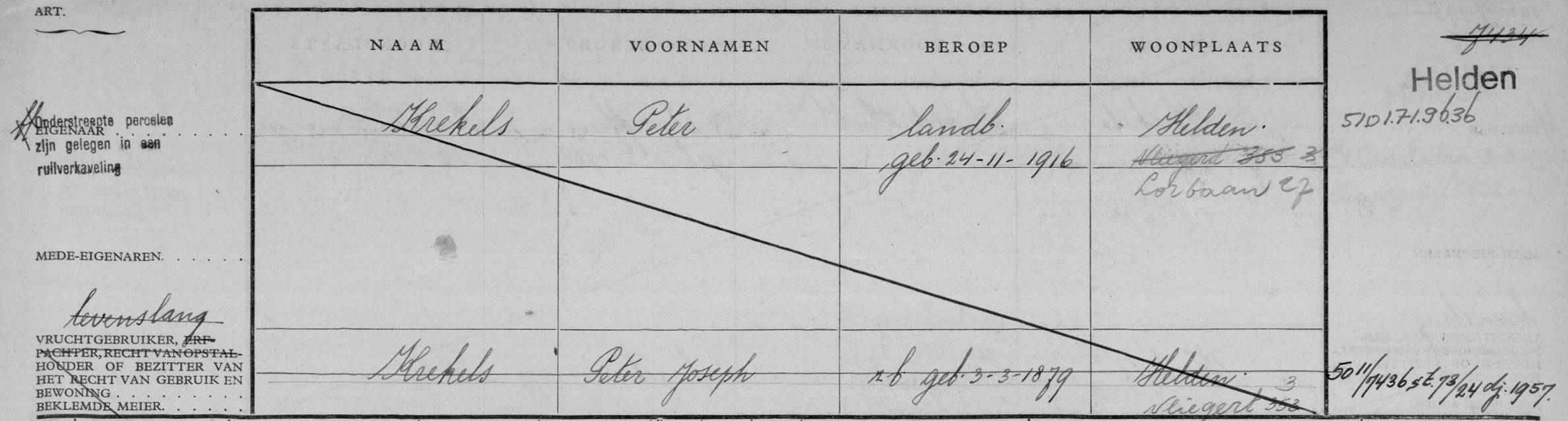 | 1965 | Peter Krekels | 24-11-1916 | 7434,4 | bijbouw en verbouw | |