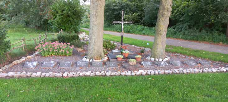 De als graven uitziende naamplaten zijn symbolisch. Daar ligt niemand begraven. Het zijn de naamplaquettes van de elf kinderen uit het gezin Drissen – Janssen. Daaronder zijn de urnen van de desbetreffende kinderen met asresten of grond vanwaar ze woonden, begraven.