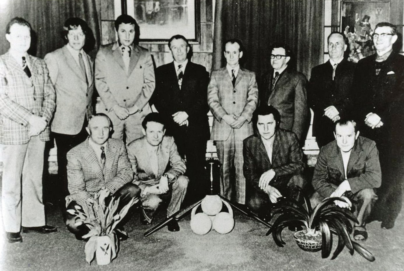 Sjeng Dorssers, meest linkse gehurkt, was een fervent en bijzonder goede beugelaar bij HBC, die zelfs een keer Nederlands "wereld"kampioen werd.