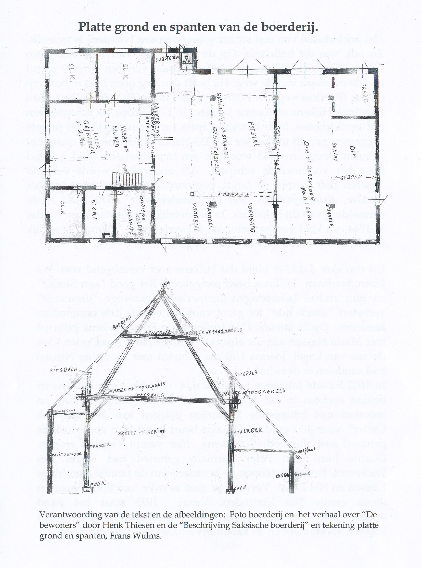 Wat ook opvalt is dat de boerderij zeer breed en lang is. Ook opvallend zijn de 2 kleine varkensstallen bij de koestal. De koestal " potstal '' en de schuur strekt zich uit over " twieë gebônke." In hoehs "keuken" is een open schouw geweest.