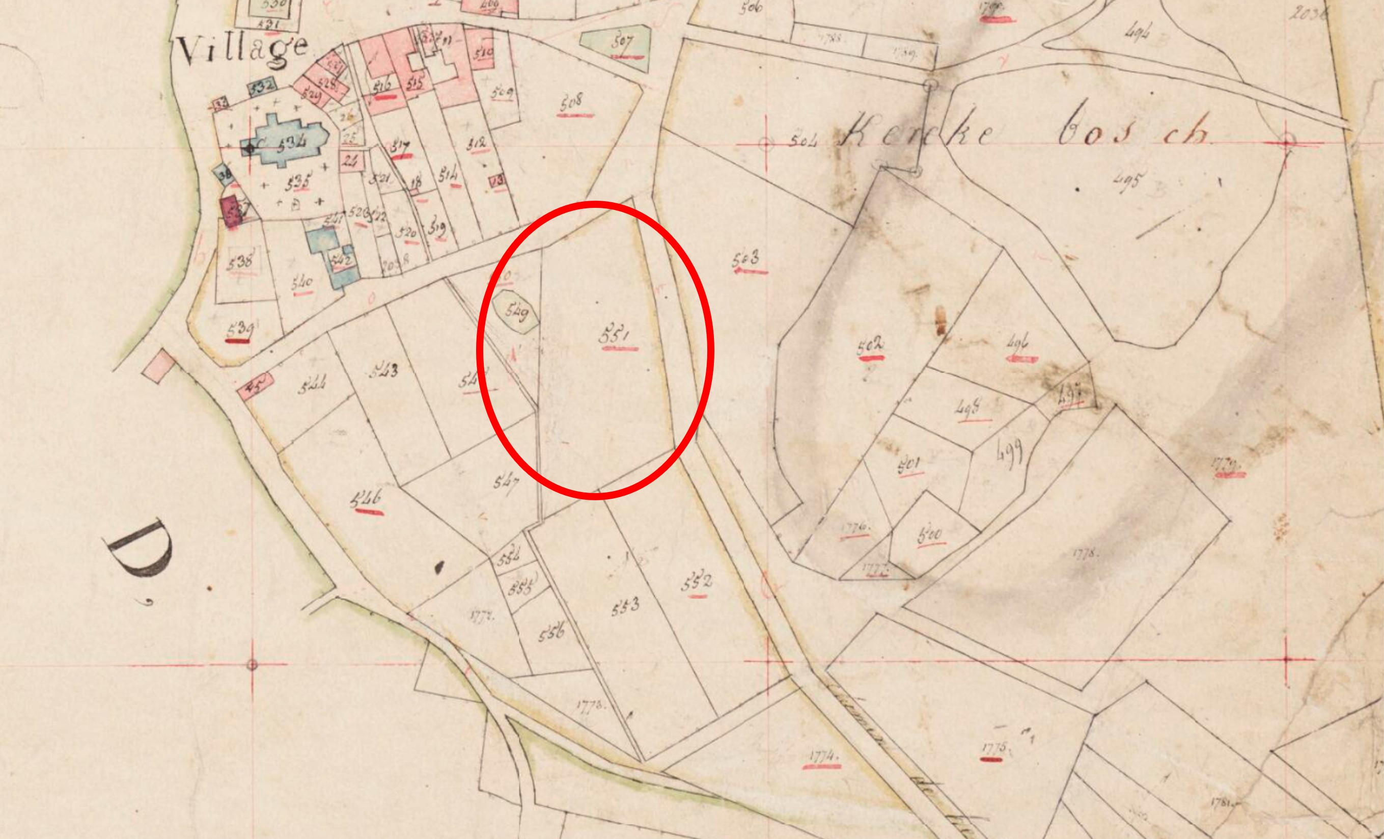 Kadastrale kaart (1811-1832): minuutplan Helden, Limburg, sectie C, blad 01, perceel 551 |