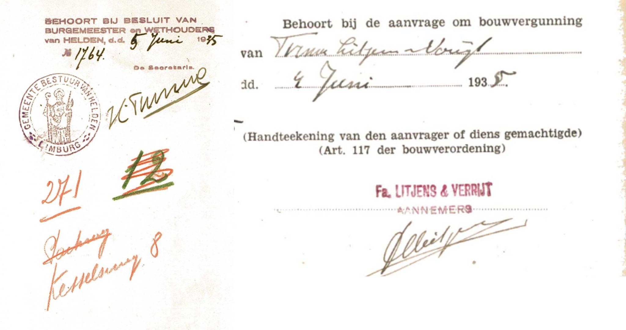 Opvallend is dat deze tekening afgestempeld is door de gemeente met het adres Kesselseweg 8 en niet met Parkweg 8. |