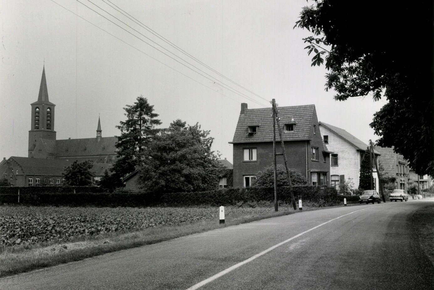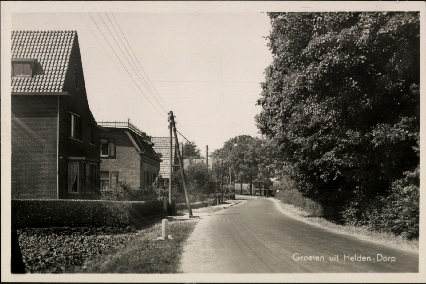 Ansichtkaart van de Kesselseweg vóór 1953 met tweede links de woning nog zonder bovenverdieping.