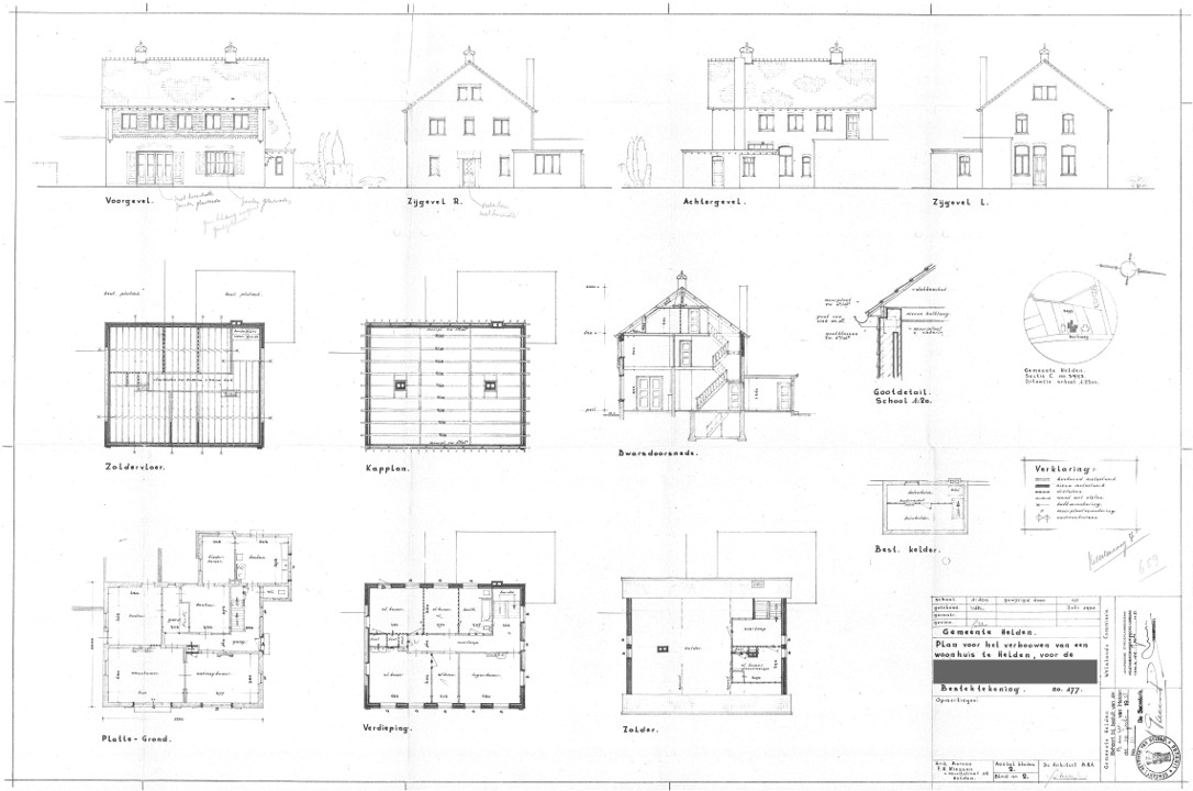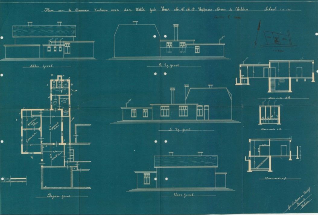 Plan voor te bouwen kantoren voor den Welld Gestr Heer Not. F.M.T Haffmans, notaris te Helden door aannemer Litjens-Verrijt |