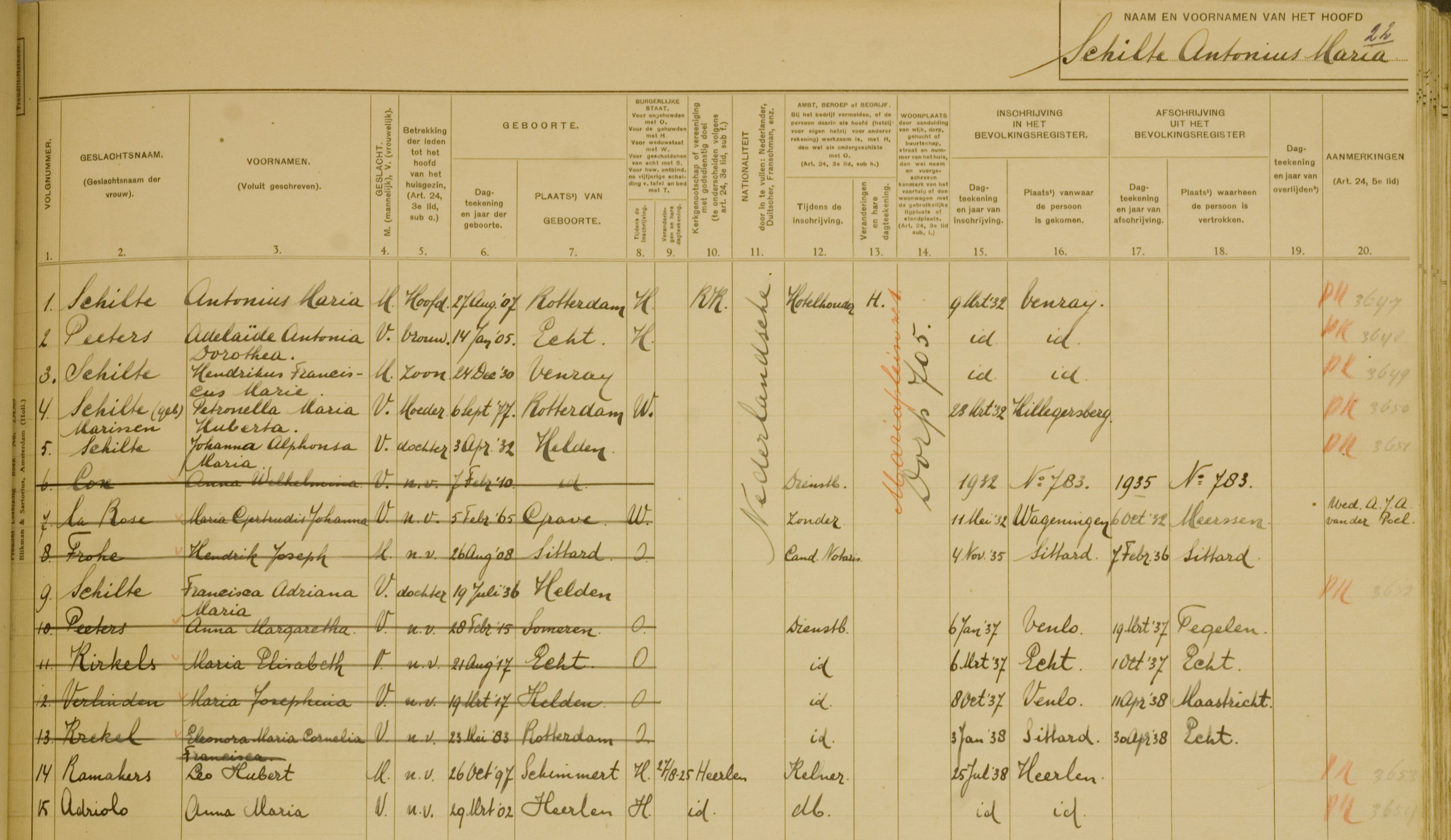 Bevolkingsregister familie Schilte en het eerste personeel in de dertiger jaren. |