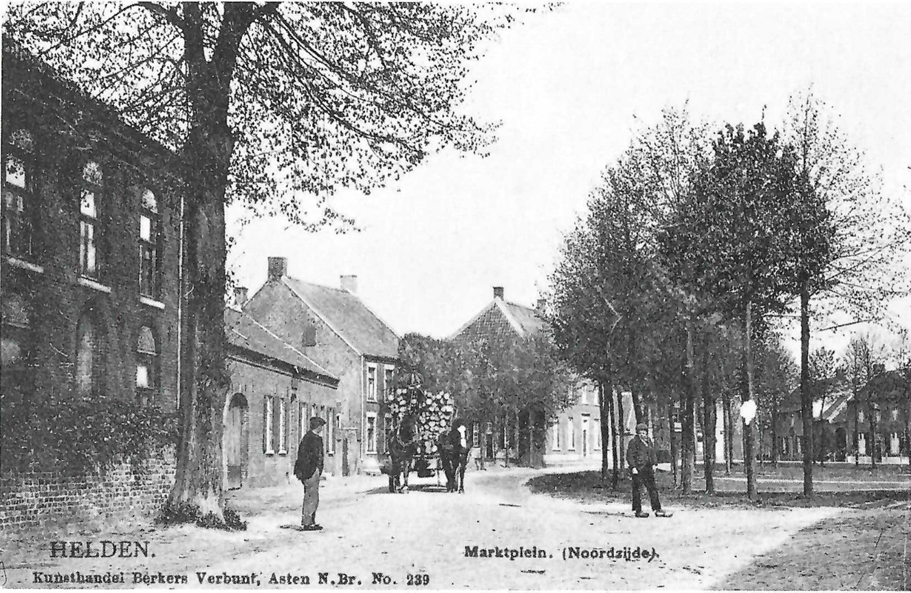 Ansichtkaart van het Marktplein uit 1910. Duidelijk is de toenmalige boerderij van Peters zichtbaar.