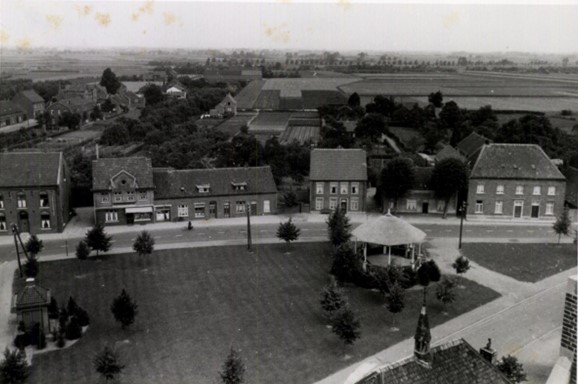 De noord-zijde van het Mariaplein ca. 10 jaren na de oorlog, met links de bakkerij Peters.