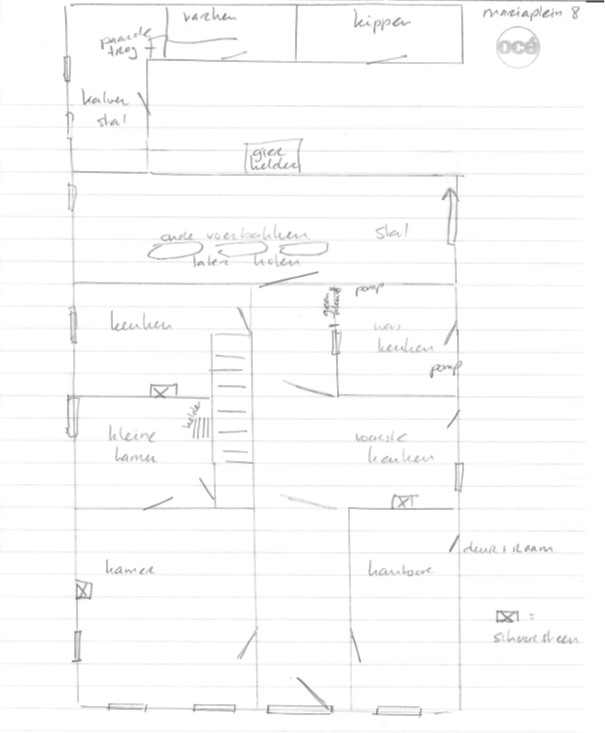 Wies Verlaak, een vorige bewoonster, heeft een eenvoudige schets gemaakt van de destijdse indeling: