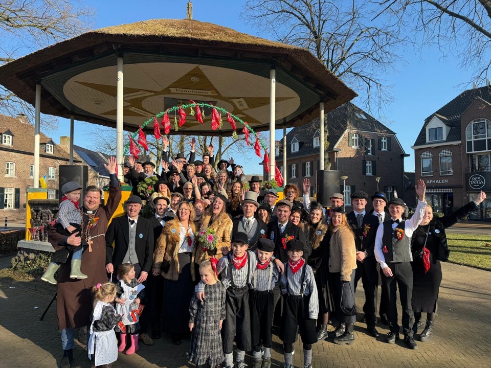 De zuil van alle mede-bouwers van de fanfare is goed zichtbaar. Deze is later zonder overleg door de gemeente verwijderd met onbekende reden. |