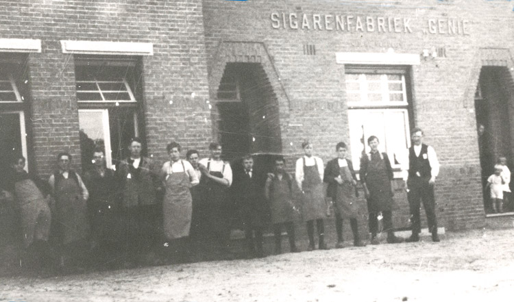 Het hele personeel van en vóór de sigarenfabriek "Genie" (ca 1930).