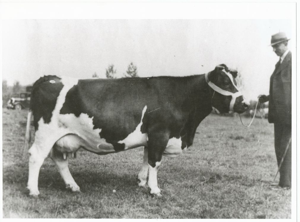 Hannes Hesen met een van zijn gelauwerde koeien. |