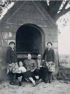 Links: De familie Kessels – van Lier voor de tweede kapel. Datum niet bekend. V.l.n.r.: An, Sjraar, moeder Van Lier, vader Pier (van deKrieëmer) en Mie.