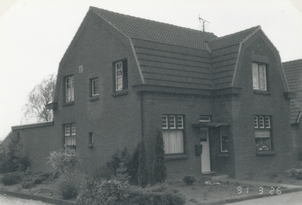 Vrijstaand woonhuis. Vensters met baksteen dorpelstenen. |