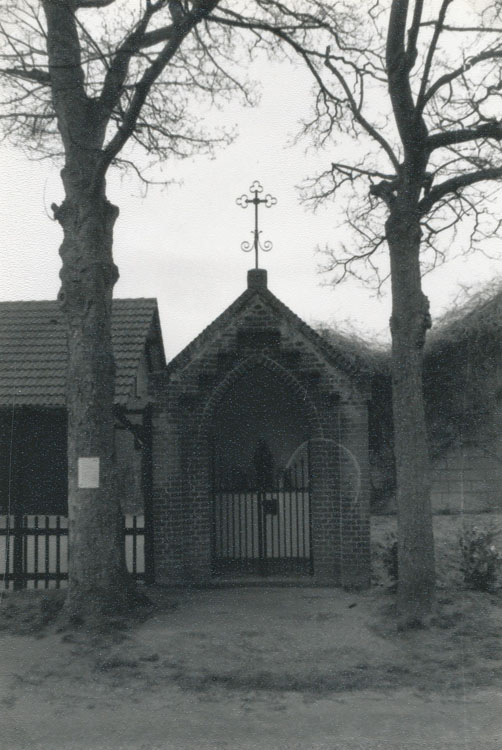 St. Petrus kapel. Spitsboogvormige toegang met smeedijzeren hekje. |