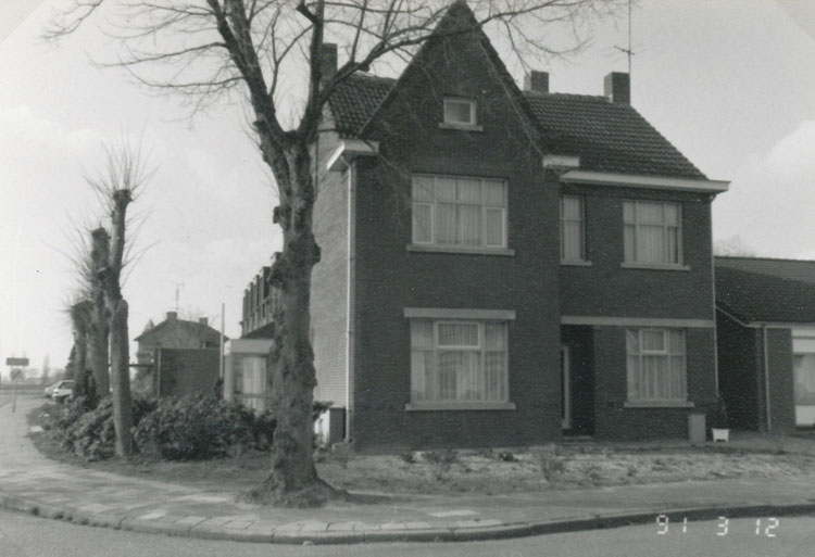 Vrijstaand woonhuis met aanbouw. Asymmetrische indeling frontgevel. Linkerdeel frontgevel vooruitspringend en uitlopend in topgevel. |