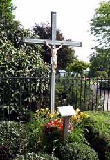 Dit kruis stond vroeger in de buurt in het veld. Toen Hein Reinders (bijgenaamd Zele Koobe Hein) deze grond in het veld in1930 kocht, verplaatste hij het kruis naar het woonhuis van de familie. Vermoedelijk is het oorspronkelijke kruis rond 1900 in het veld geplaatst door Pier Nijsen (bijgenaamd Graate Pieër). Mogelijk is het dus een hagelkruis om de gewassen te beschermen.